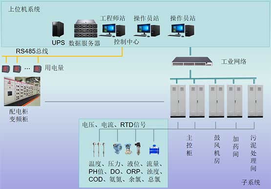 现场仪表:液位、流量、温度、压力、曝气风量、PH值、DO、余氯、总氯、ORP、COD、BOD、氨氮、总磷、浊度、MLSS污泥浓度等