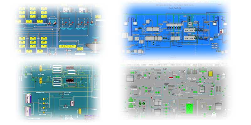 -实现水处理参数(液位、流量、温度、压力、曝气风量、PH值、DO、余氯、总氯、ORP、COD、氨氮、总磷等)实时显示和设备 (进出水阀、搅拌器、推流器、粗细格栅、提升泵、排污泵、回流泵、鼓风机、排风机、除臭机、脱水机等)运行故障状态实时显示。