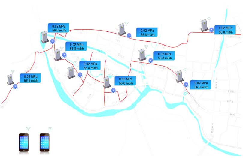 管网关键节点位置的压力、流量监测,数据异常时报警