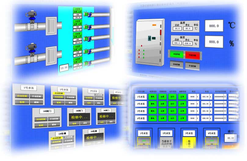 设备的手动控制和自动控制的切换,设备的手动开关阀门和启停控制泵。自动稳压控制、自动倒泵运行控制、自动泵故障切换运行控制。