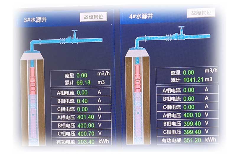 联锁启停:和水厂监控系统联动,实现水厂进水池和井泵的联锁。