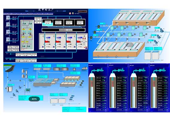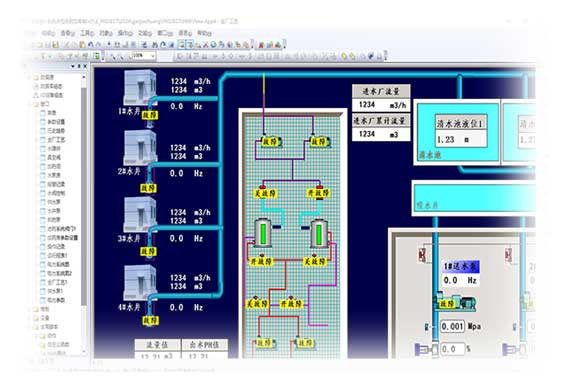 动态图形显示自来水厂工艺流程、工艺参数值和工艺设备的运行状态。